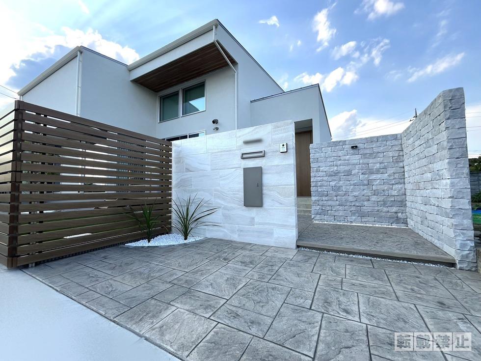 前橋市 N様邸 タイルと石積の目隠し壁をモルタル造形で表現したエクステリア事例
