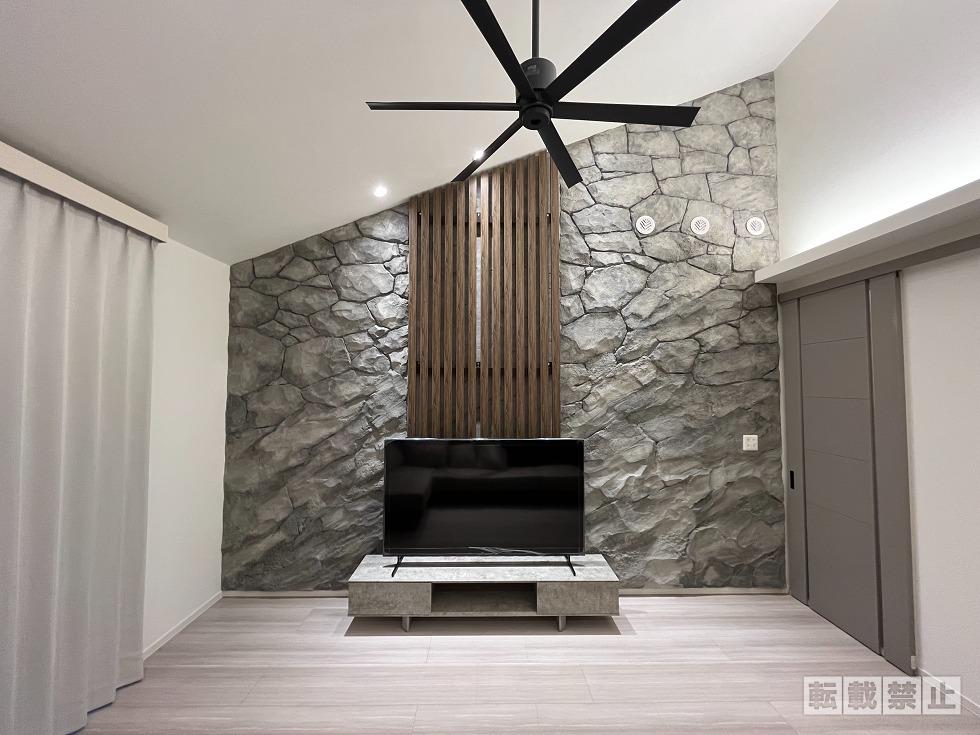 渋川市 O様邸 リビングの壁を崖のようなロックワークに‼︎ 迫力のあるモルタル造形内装リフォーム事例