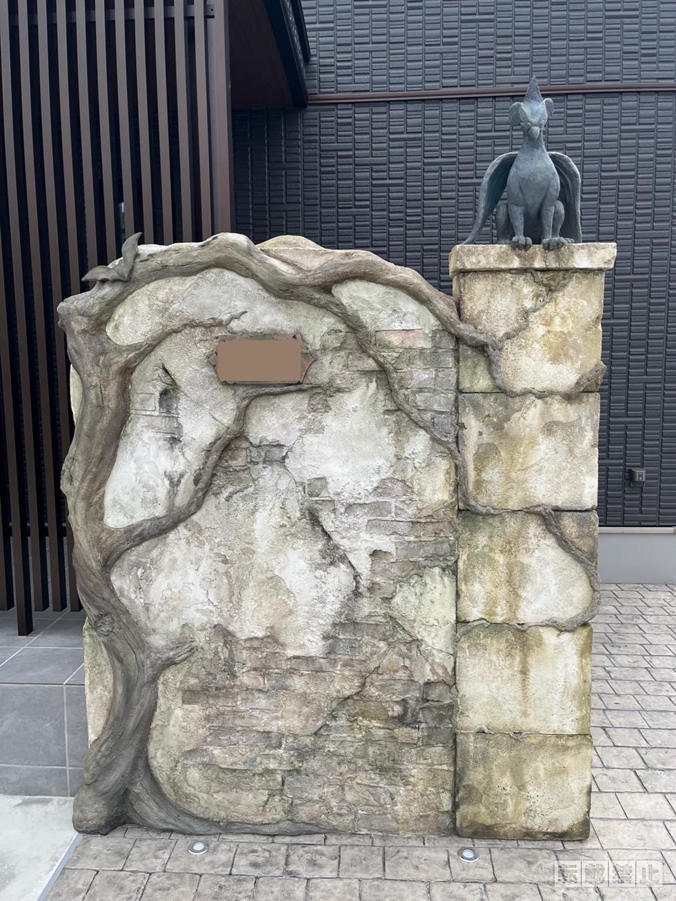 前橋市 K様 ホラー映画のワンシーンを切り取ったようなオンリーワンのモルタル造形門柱があるエクステリア事例